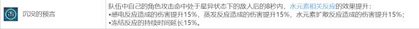 【泡影解除】:怪物被施加泡影状态后,受到攻击时泡影会解除,通常情况下,星异的增伤时间只有泡影解除后的5秒钟,但如果怪物处于[冻结]状态时,泡影不会解除。也就是说,泡影的时间将会从5秒变为9秒,如果在冻结期间内持续附着水冰元素,冻结时间进一步延长,那么星异的增伤时间也会进一步延长。这也是为什么莫娜更适合永冻队的原因,也是莫甘娜这个组合强势的原因。