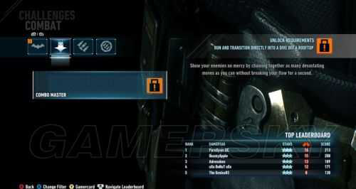 这些挑战分为了追踪、战斗、捕猎、蝙蝠车,这基本是根据蝙蝠侠的基础技能来划分的挑战。