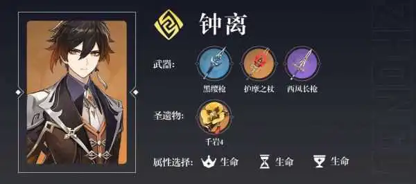 「钟离」0命5精【黑缨枪】,生生生主属性【千岩】4