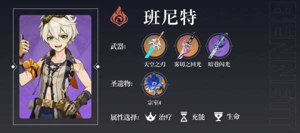 「班尼特」5命1精【天空之刃】,充生治主属性【宗室】4,副词条倾向分配给充能