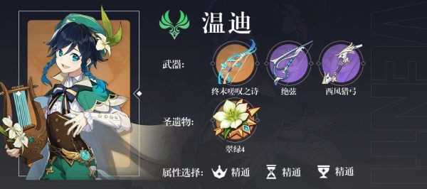 「温迪」0命1精【终末】,精通主属性【翠绿】4,副词条倾向分配给精通