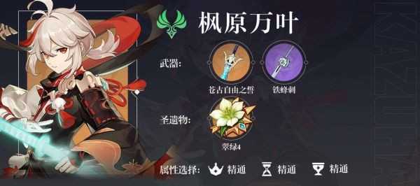 「万叶」0命1精【铁蜂刺】,精通主属性【翠绿】4,副词条倾向分配给精通