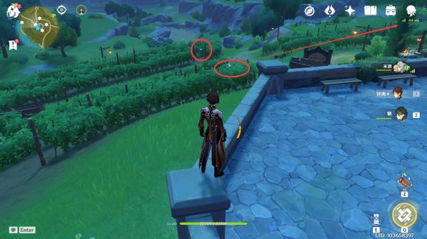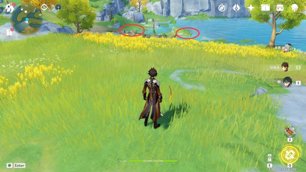 先去宗室本右上那个传送点,到了后往右边看,会有一个岩史莱姆,然后有2只晶蝶,之后过桥在两个丘丘人躺着的花圃内有两只晶蝶。