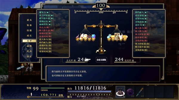 可以看到其实天平的攻防加成是其实很低,而异常抗性新章可以通过盾牌强化和适应力补满,所以天平里收益最大的应该是精力提升量、持续时间、金币获取、缓慢回复+体力回复量。