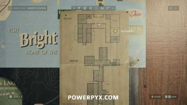 与餐厅里的人交谈后,跟随凯西和警长前往警察局,进入警察局后可以在柜台后面找到地图。