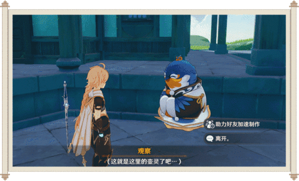 如果好友当前有正在制作的摆设,与好友尘歌壶的壶灵交互,可以助力加速好友正在制作的摆设。