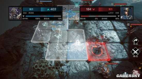 第三回合,鹰眼攻击弓箭手,突击骑士向前行军,弓舞者攻击黑锋守卫。