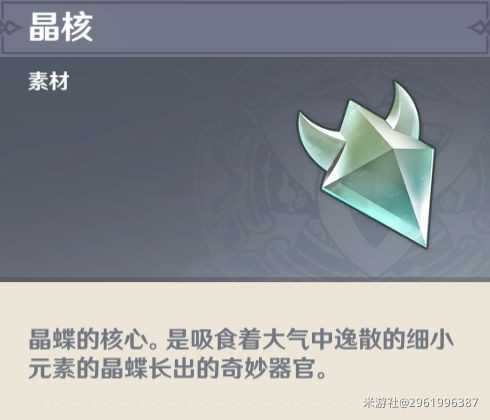 素材描写:晶蝶的核心,是吸食着大气中逸散的细小元素的晶蝶长出的奇妙器官。·