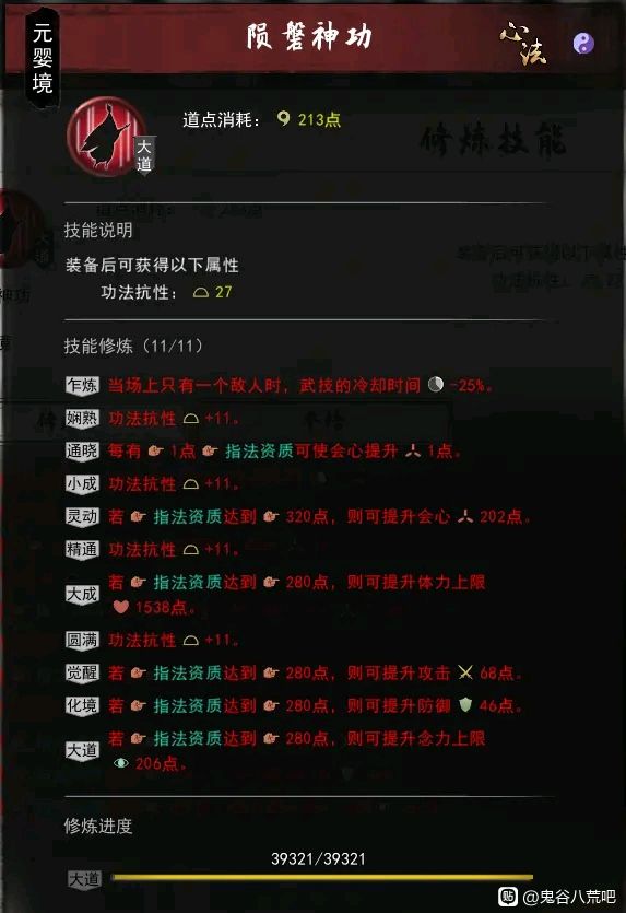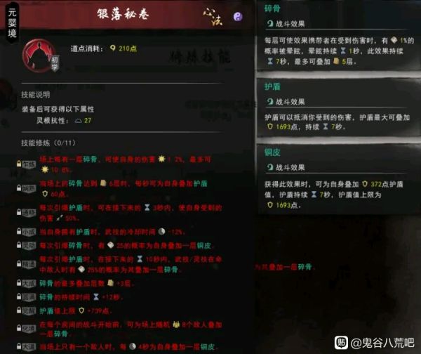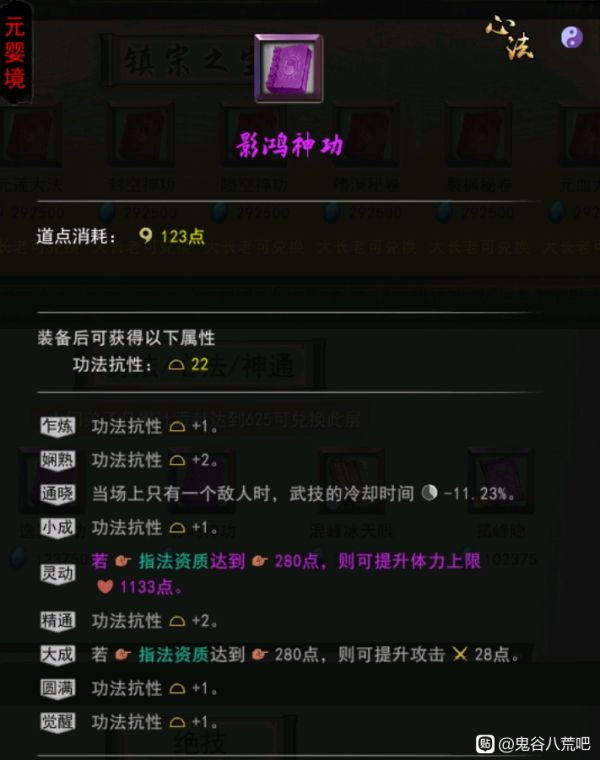 秘籍就是大家熟知的三件套。拳系密卷最好能加碎骨层数。然后让所有CD加上刀身法的大于100%即可。