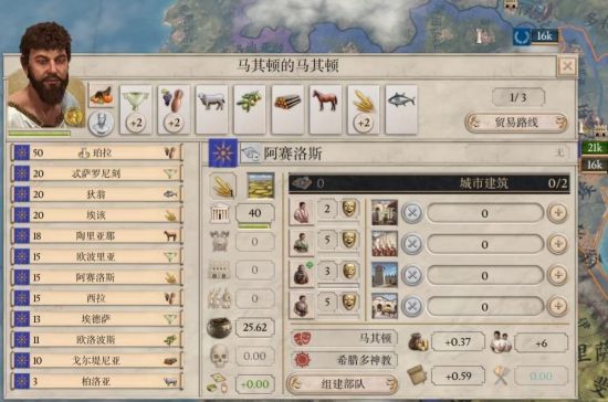 马其顿的马其顿,前者是国家,后者是省份,右下是你的马其顿省的城市,上二排是该省所有产出的原物料特产。