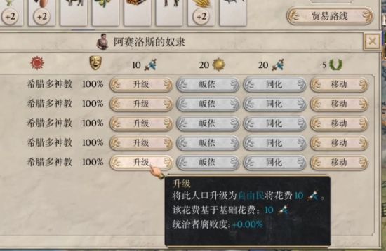 如果四种社会阶级民众有多余的,可以透过花点数来升级皈依与同化,也可移动到其它省份,不同族种族用同化,不同宗教用皈依。