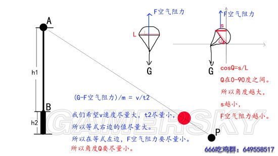 由以上公式可得,角度Q越大,伞受力面积S越小,相对的F空气阻力也就越小。