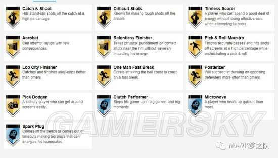 徽章方面,斯泽比亚克拥有10个金章和1个铜章,金章分别为:接球投篮手、底角专家、中距离神射手、远距离神射手、无限射程、高难度投篮手、坚韧得分手、特技演员、强力终结者以及战术挡拆大师。唯一一个铜章则是挡拆闪躲者。