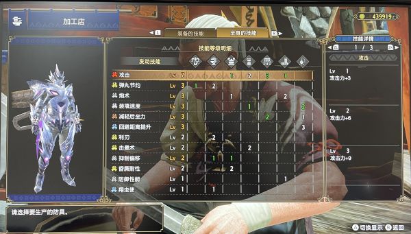 技能选择上,对躺地滴蜡插蜡烛打法有用的技能有攻击、炮术、击晕、弹丸节约、装填数,另外还有应对爆裂果实不足的集中(蓄力打法)、组队可能有需要的破坏王和保命的回距。