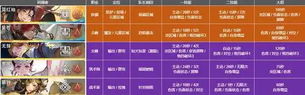 可以明显看到,雷火系都没有奶(期待将来出这2系的奶可以让流派可以再上升一个台阶),所以一般需要留一个位置给奶,此外,还必须要有角色制造炎区域提供场地,所以昊苍和无咎必须上一个(指望罗咤和莫红袖的大招上炎区域就太慢了),可以在剩下的7个角色里选2个上场,根据烙痕和角色的情况,如果烙痕有【旧友无多】那当然选2雷1火,如果无咎当队长有【如火如荼】的BUFF,也可以选2火1雷,多余的角色可以放在替补席里灵活调整阵容。具体位置推荐如下: