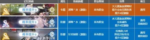 分别对应莫红袖、龙晴、襄铃,如果激励凑不齐的时候可以选择这些烙痕,优先凑满20层激励再考虑其他的通用型烙痕,生存向或者攻击向的都可以。