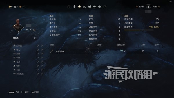 后面随着剧情的推进,以及对战斗机制的熟悉,此时再考虑提升与所装备武器相关的属性,这样来增加角色造成的伤害。装备负重可以根据自己所玩的流派来考虑加点的多少,不要一次性提升太多,以免造成数值上的浪费。