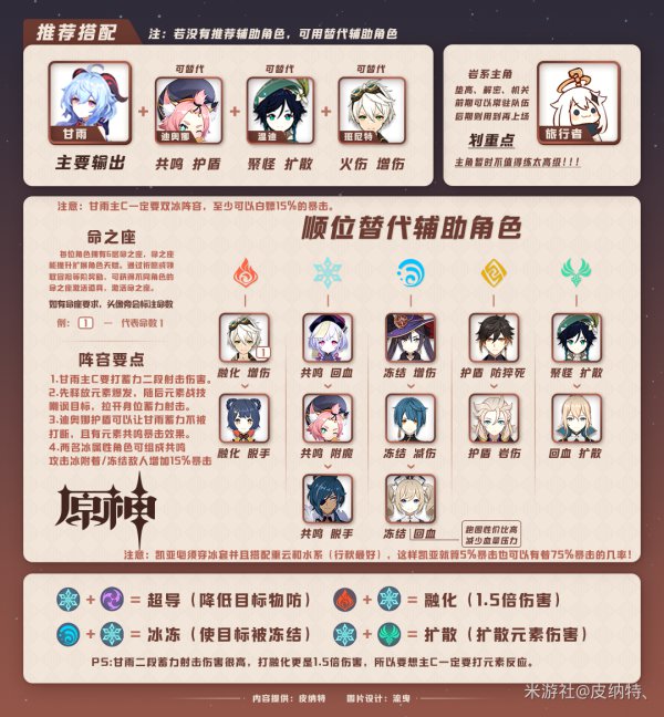 《原神》甘雨作为冰系的新角色,不仅有着玩家们都很喜爱的外观,战斗能力也很强大,抽到手还不知道怎培养的玩家请看下面“皮纳特、”分享的《原神》甘雨装备搭配及阵容推荐,希望能够帮助大家。