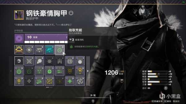 年四新赛季的神器让原本虚空胸甲的“强力手炮瞄准稳定模组(5费)”变成了1费,配合喷子瞄准+通用恢复提升模组,我将剩下的三点费用用在了拾取充能,因为PVP中可以产生能量球,这三点费用就可以充分利用,配合踢踏5上的高能射击: