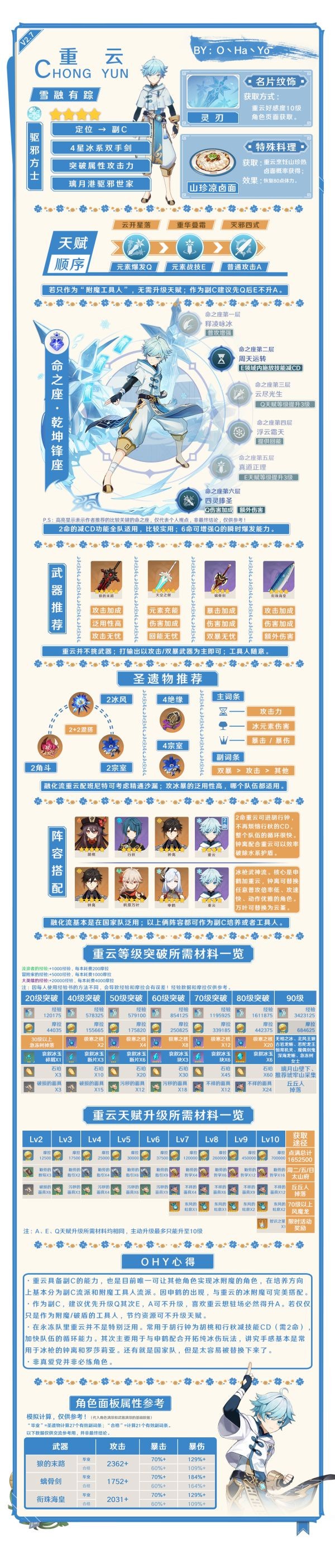 重云除了没有后台持续输出和挂冰能力,其他的也没啥挑剔的地方,想培养做个速切副C也是可以,不然就只做个附魔的工具人即可。