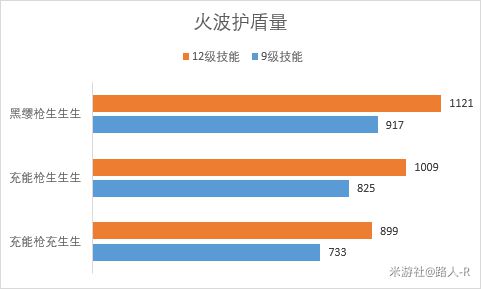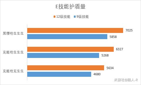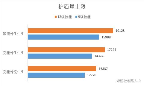 以充能枪生生生9级技能为例,各部分护盾量对比如下: