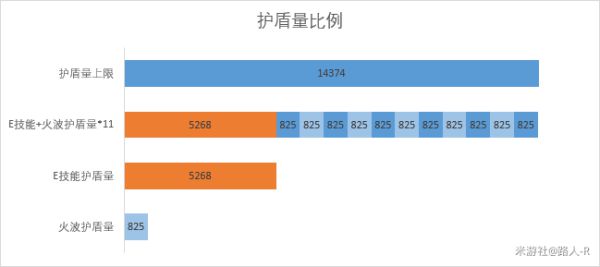 可见护盾量上限是较难达到的,在不受到伤害的情况下需触发11次火波才能达到护盾量上限。大部分情况下可靠的护盾量只有E技能给予的护盾,5000-7000的护盾较难胜任大部分情况。