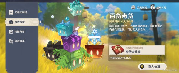 且累计上交次数到达5次可开启奇货大礼盒