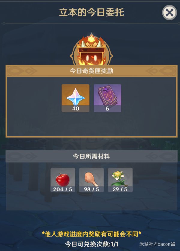 你可以带着材料去别人世界里提交奇货奖励