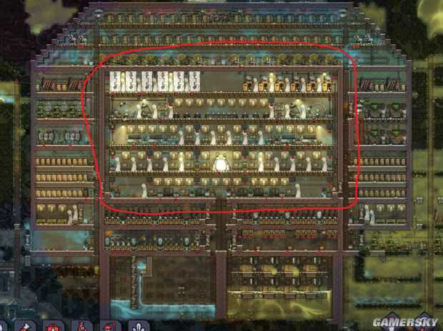 家里被圈上的地方,前期用藻类制氧,后期可以抽取外围氧气然后经过空调制氧。目前15个小人,氧气还是可以的全蓝。