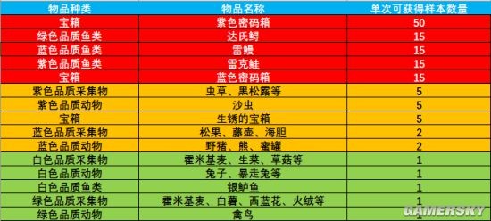 奉献点数目前有2种形式获得,一种是上交样本,样本则可以通过大世界采集,开启密码箱等形式获得,具体的获得比例将大概分为以下几种,红色是推荐大家刷取的方式哦,目前获得比较多