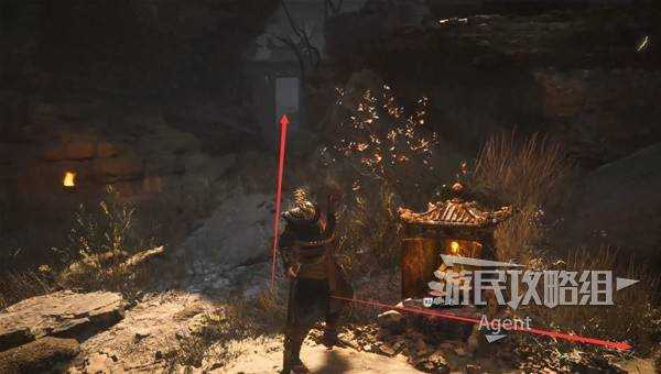 继续往前探索阳光下的区域,就会抵达下一个土地庙了,先不过去。我们先回到“藏风山凹”土地庙,走左边阴暗的路,一样也能通往下一个土地庙。