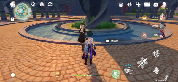 白天广场上风神像前会有四个人,其中之一