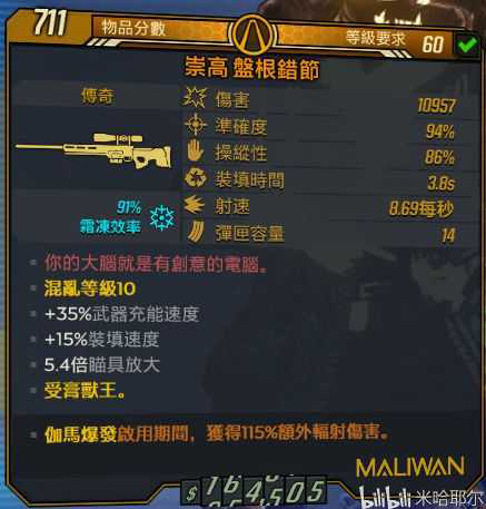 dlc3强力新狙击枪【盘根错节】,简中【复杂根须】,伤害非常爆炸,适合打大型Boss或者精英怪。