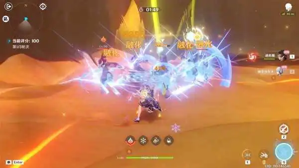 开局夜兰直接使用大招,接着使用E技能。(因为试用角色夜兰带的武器是祭礼弓,E技能后有概率刷新E技能,若E技能刷新后小伙伴们需要再次使用E技能增加元素充能)