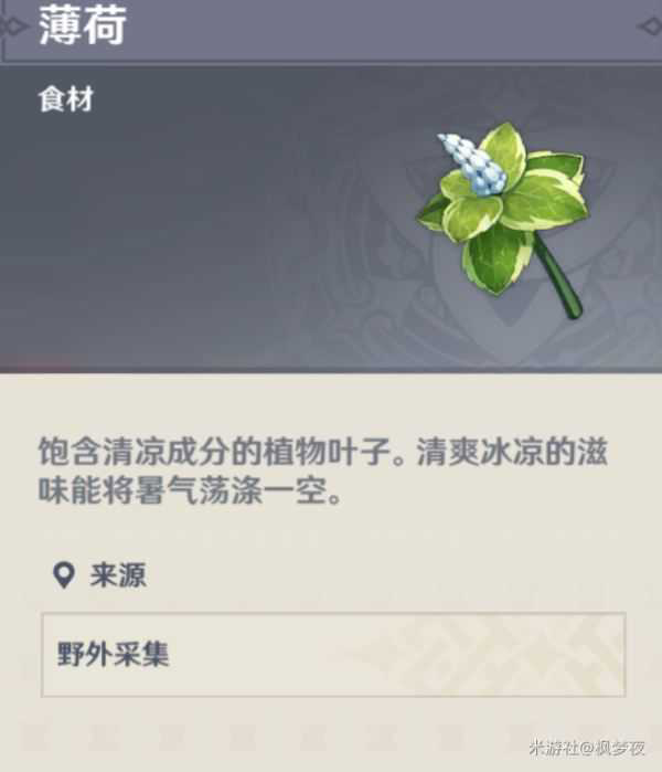 《原神》中的薄荷是一种重要的料理材料,并且也能通过炼金做成染料。下面请看由“枫梦夜”带来的《原神》2.7版薄荷采集路线分享,一起来看看吧。