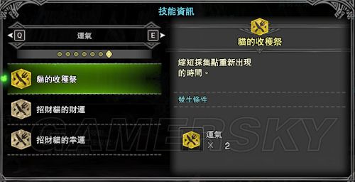 这时候我们就可以果断选择刷这张图。在开始采集之前,记得要吃“猫的换算术”(必须),或者“猫的收获祭”猫饭。