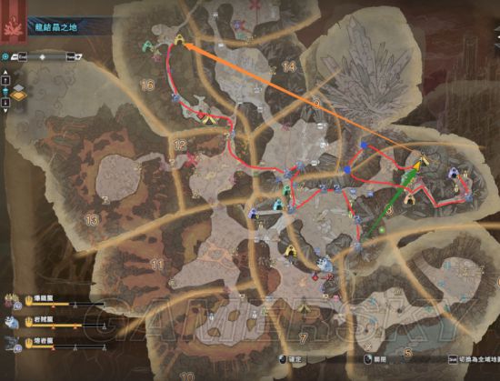 要达到速刷的效果,最好的选择无疑是龙结晶之地这张图,活性化采集点多而且紧凑,地图元素少(转起来不会太晕)。