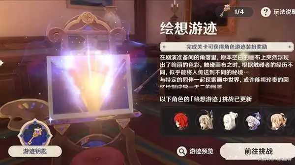 《原神》4.8版本更新后,绘想游迹常驻玩法已经开启,完成角色挑战后就可以获得该角色的游迹,下面请看由“风伤幽冥”为大家带来的《原神》4.8绘想游迹通关指南与奖励一览,希望对大家有所帮助。