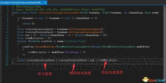 由学生学习速度*教师培训速度*某个数字(懒得研究)*物品加成速度