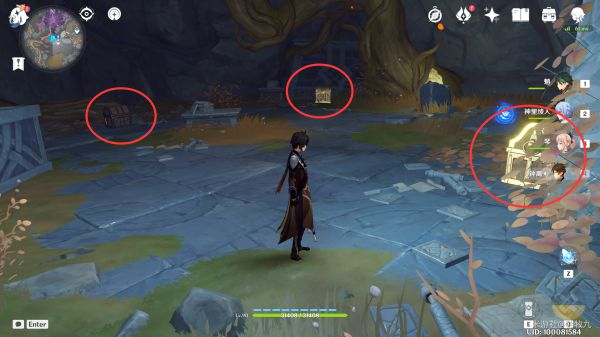 提交完「渊青宝珠」后会开启大门,里面还有三个宝箱,各位旅行者不要忘记拿。