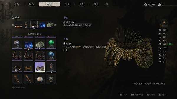 珍玩:虎筋、博山卢(防御核心)、琥珀念珠(可换金棕衣)、金乌和玉兔