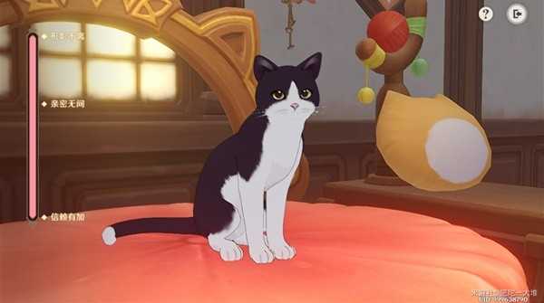 投喂猫猫后,可在「咪呜呜宝座」召来对应的猫猫,或者直接邀请猫猫与其玩耍。旅行者可以抚摸猫猫不同部位,提升猫猫的好感度。