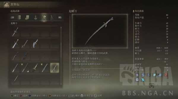 龙人士兵击杀之后掉落龙鳞刀,纯物理面板力D敏C补正,战技冰雷附魔。