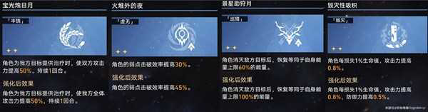 一星里面,巡猎加双暴的、击破弱点,毁灭回能、效果抵抗、免疫死亡,丰饶中加治疗量和回战技点都是很适合景元队伍的祝福。