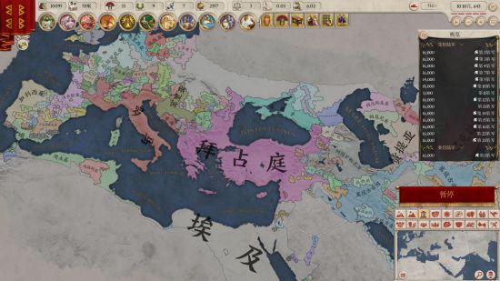 开局的几个继业者国家要么互相结盟要么互相保独,而对于扩张来说最好是吃同文化(组)同宗教的地块,那么前期的目标就定下来了:吃掉色雷斯和马其顿,先吃色雷斯后吃马其顿最后拿下整个希腊,这样就有非常稳固的基本盘可以肆意扩张。