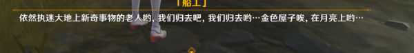 采集蘑菇佬的蘑菇,他会出来指责你,给他带来从未见过的新蘑菇,让他放弃执念,前往登船