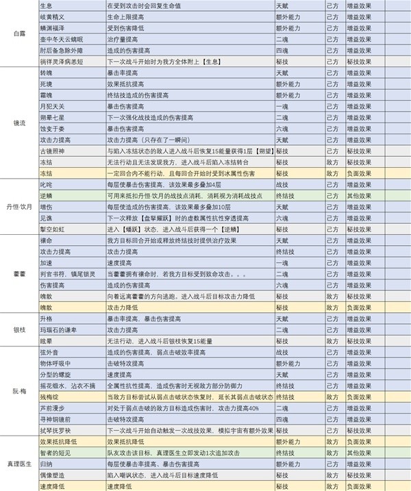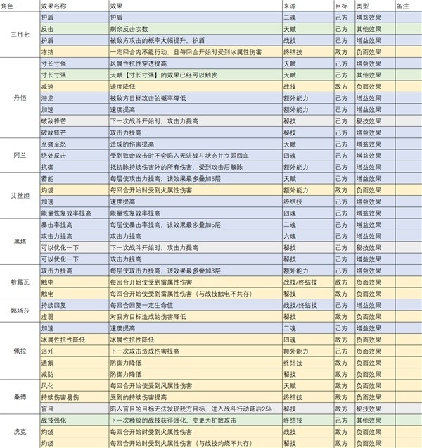 《崩坏星穹铁道》正面效果和负面效果非常多,想要知道那些角色能够提供什么效果的玩家请看下面“Rebron0”带来的《崩坏星穹铁道》1.6全角色BUFF效果整理,希望能够帮助大家。