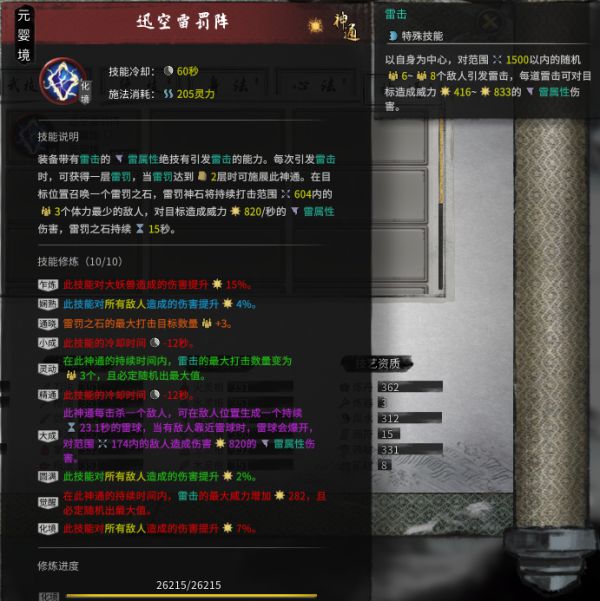 神通选择雷罚阵(天雷劫水分身开不出来)