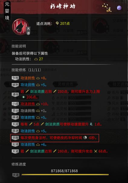 神功选用剑神功(打法是右键身法右键,增加输出,连续刷新减左键cd词条,提高输出效率)