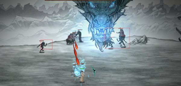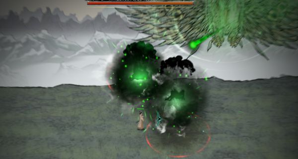进图速度靠近把水身法放出来(手速快可打两个绝技),分身吸引第一轮波,把小怪清掉,往上走躲它冲击,等回来右键空格右键打一套(不放神通),之后太会开始全屏炸(别慌,往炸过的地方跑,尽量躲),之后它会愣住,抓住机会吃攻击药开神通右键空格右键打一套(打一套时,人站左边,分身放在右边如下图)